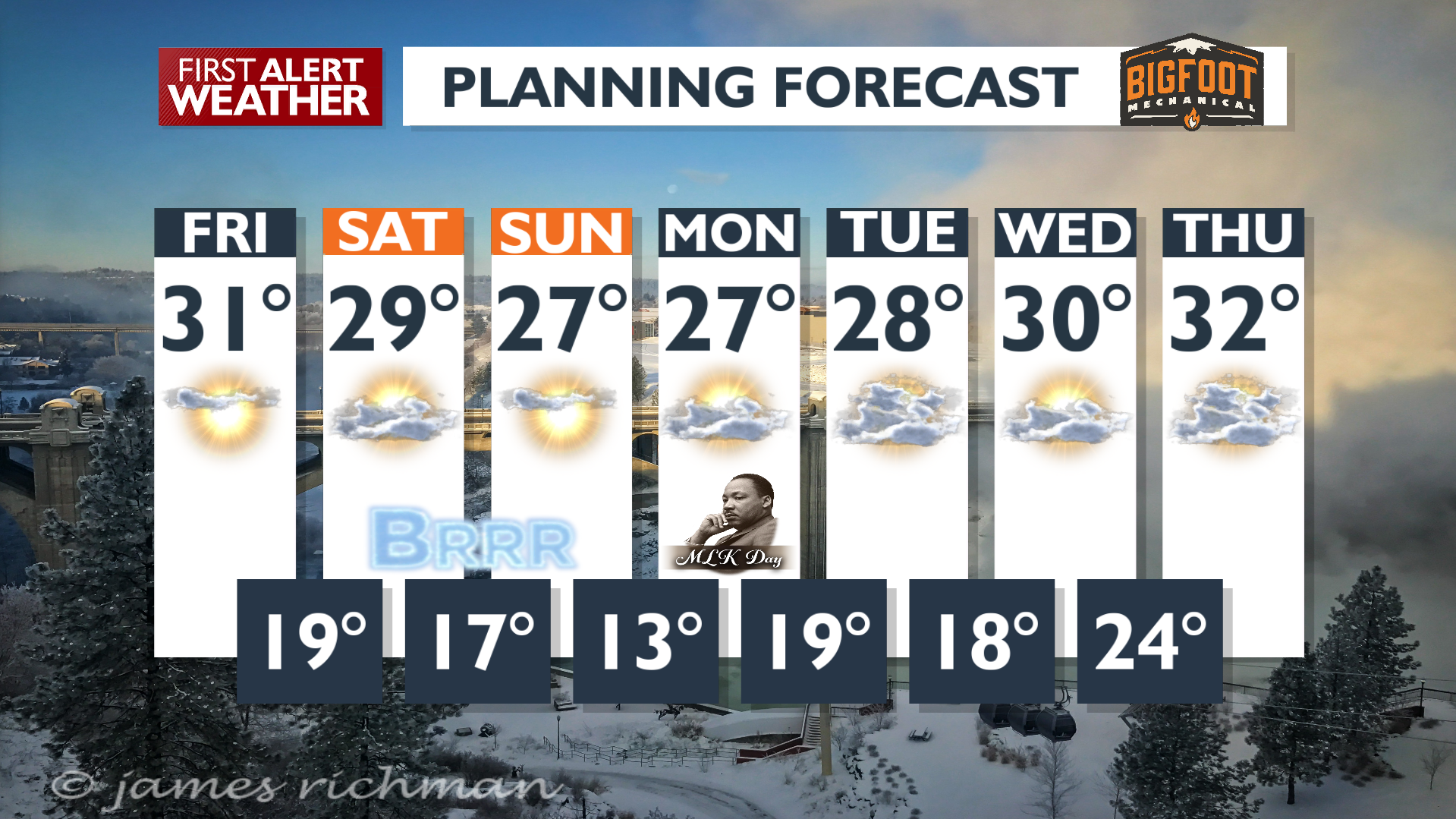 It’s a cold morning around the Inland Northwest, and it’s only going to get colder this weekend. Sunshine and chilly temperatures will dominate the forecast through Martin Luther King Jr. Day on Monday.