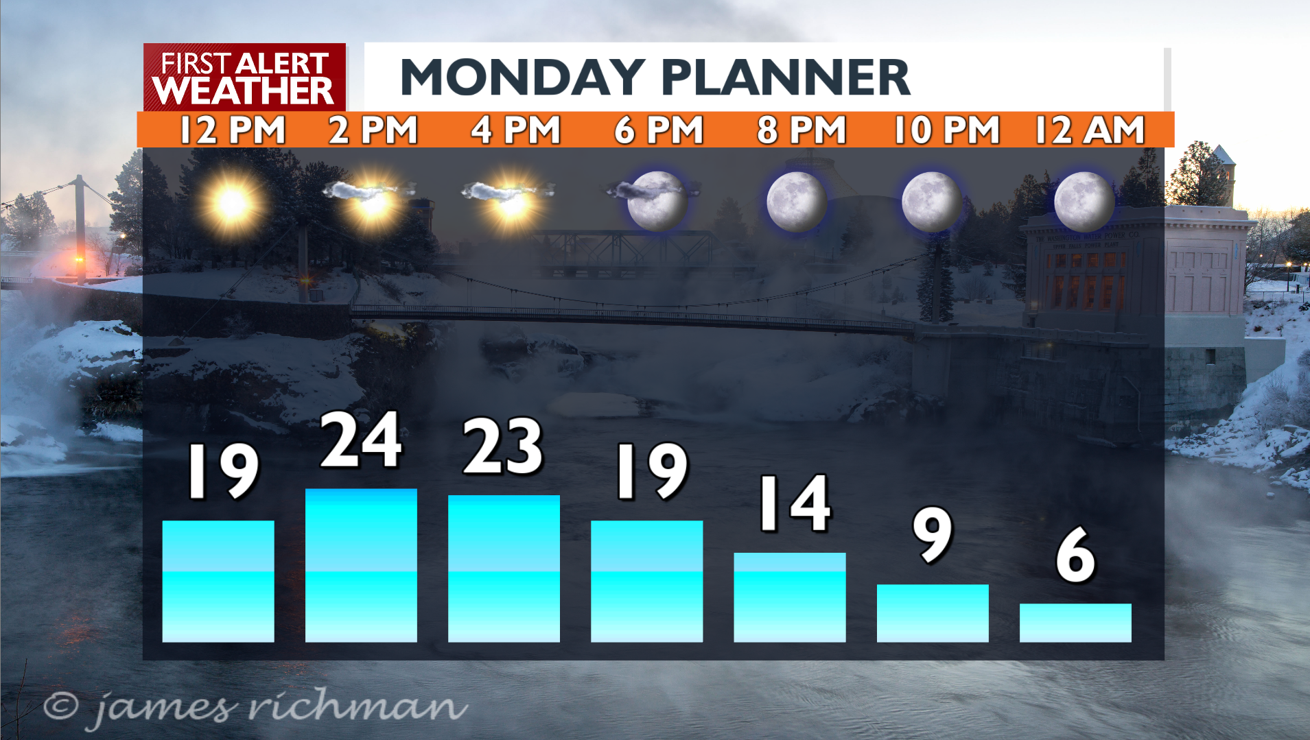 Clear and coldFull moon tonight, clear skyLooks the same for Tuesday and Wednesday morning