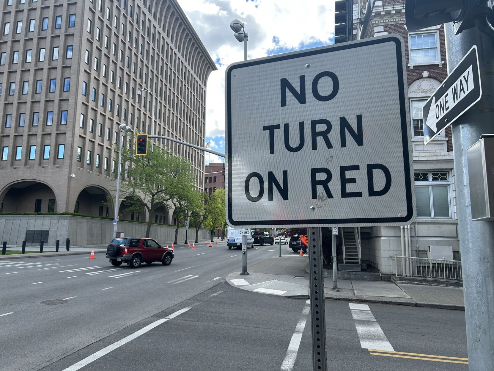 The ordinance bans turning right at red lights in downtown Spokane in an attempt to improve pedestrian safety.
