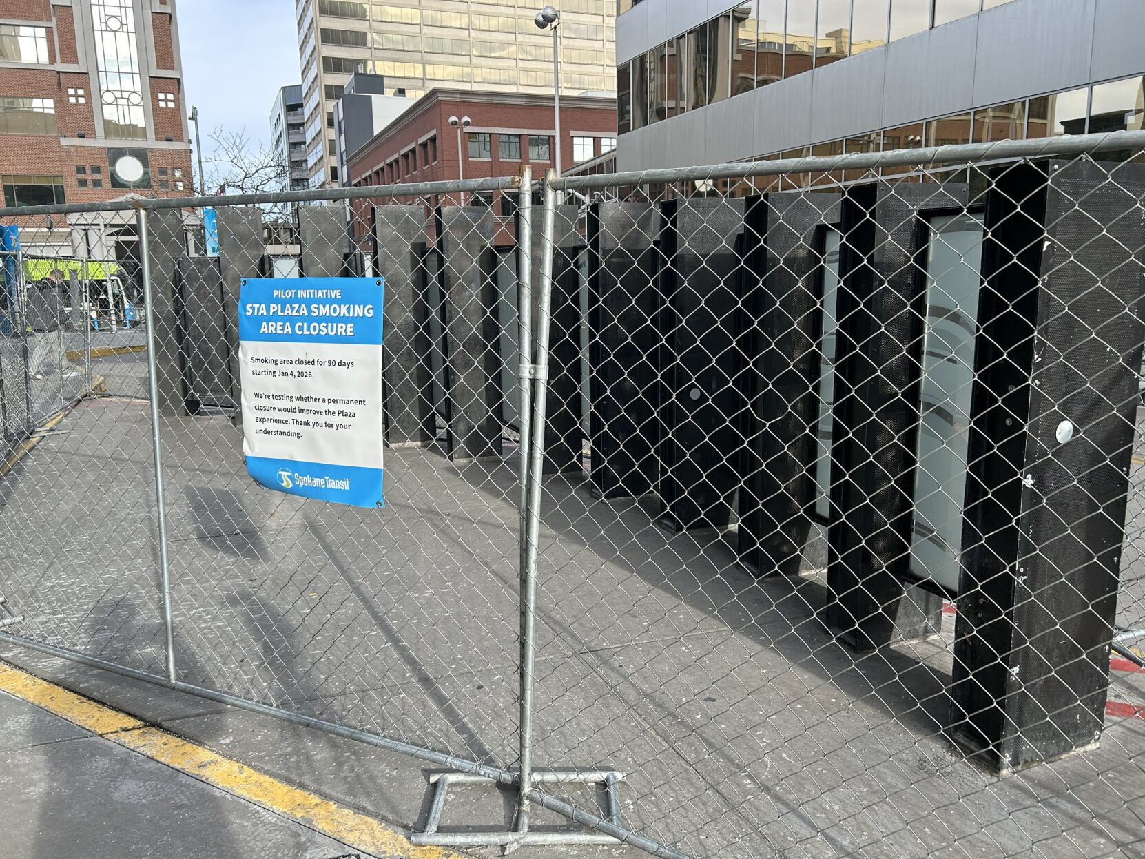 SPOKANE, Wash. — Spokane Transit Authority has closed the smoking area at its downtown plaza as part of a pilot program to improve safety.