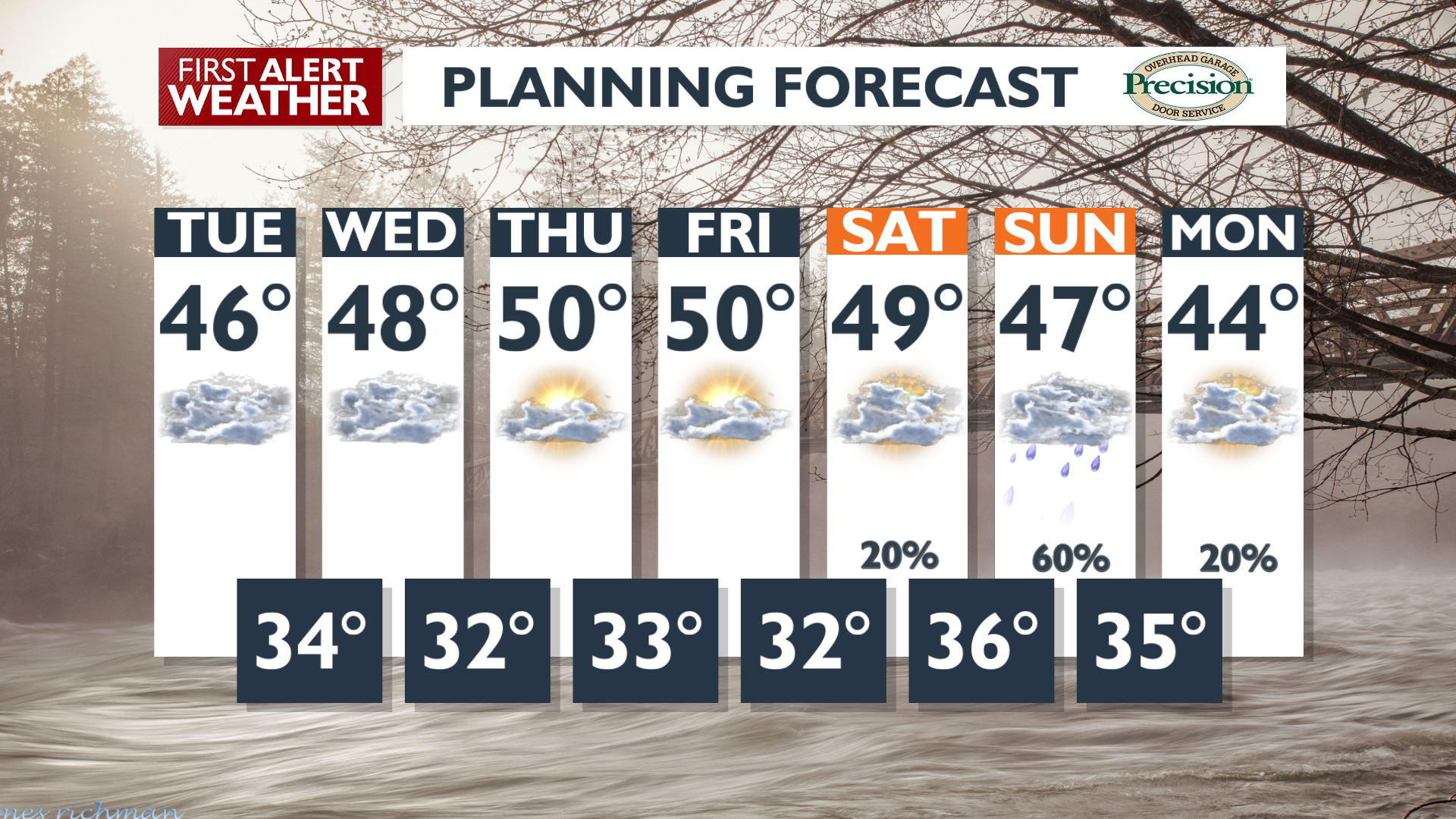 By the weekend, the High breaks down and rain and mountain snow arrive Saturday night and hang around through Sunday.