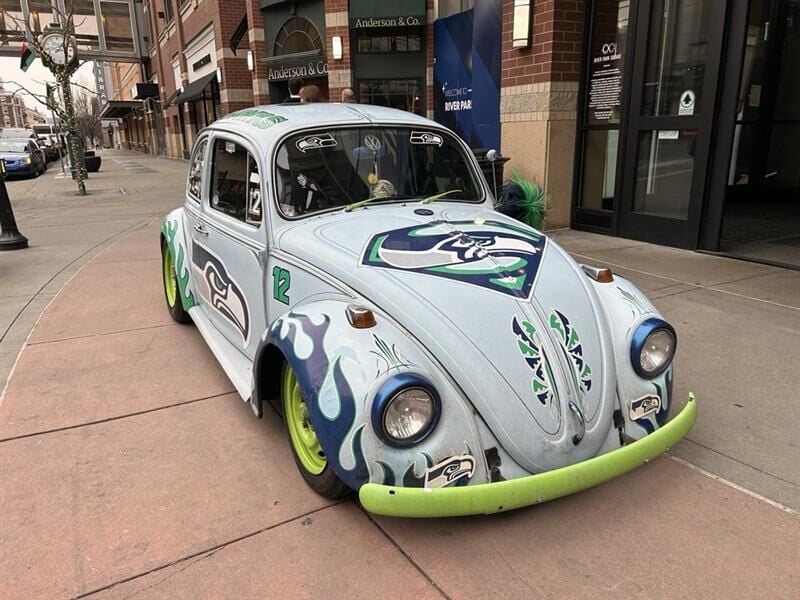 Dennis Bjerke, a die-hard Seahawks fan, parked his 1967 Volkswagen Bug outside the event. He decorated the car with Seahawks graphics and has had it for more than ten years.