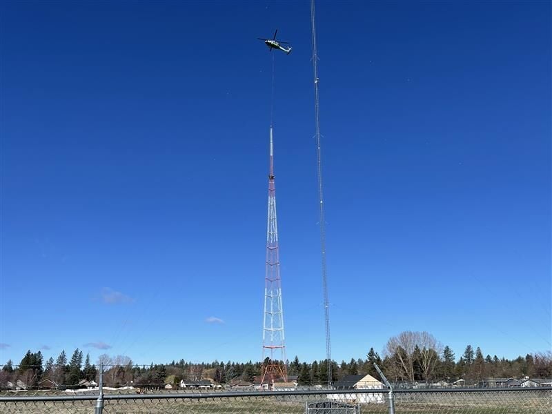 SPOKANE, Wash – The helicopter hovering over South Regal in Spokane Saturday is demolishing a historic radio tower.