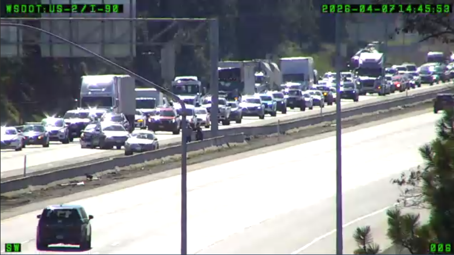 A crash is blocking the left lane on I-90 eastbound near Garden Springs Road exit, according to Spokane Regional Transportation Management Center.