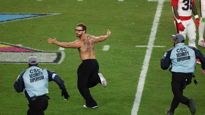 Super Bowl 60 briefly turned into a cardio exhibition early in the fourth quarter when a fan decided he, too, wanted to be part of the game. A shirtless man came flying in from the Seahawks end zone, forcing a quick pause in the action while security scrambled. And when I say scrambled-I mean this guy split defenders. ...